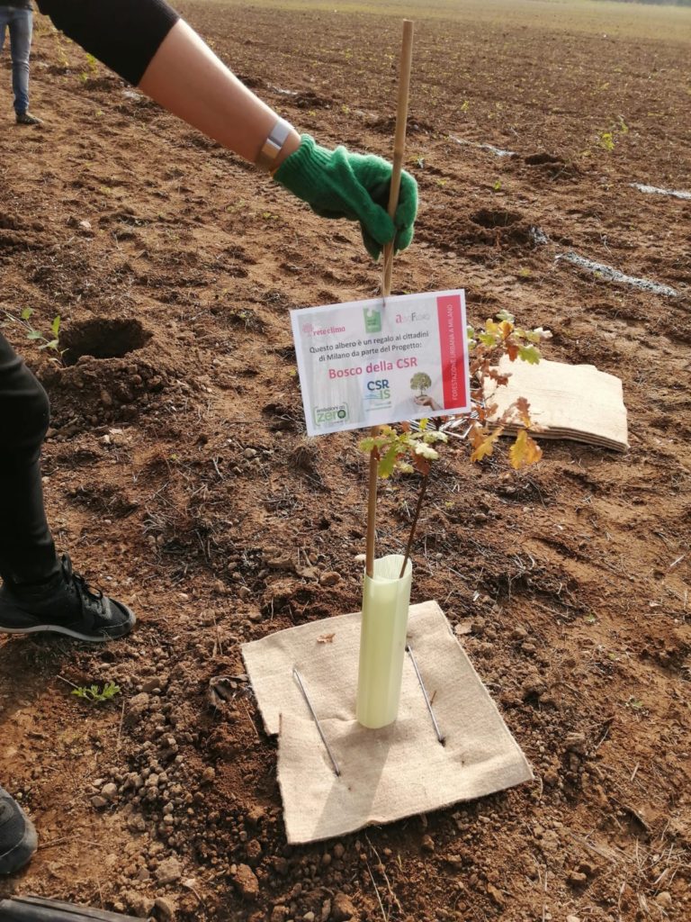 Quest’anno Rete Clima ha proposto un’attività a metà strada tra un sondaggio e una call to action. I visitatori sono stati chiamati a indicare su appositi cartellini “che cosa manca” e “cosa è già stato raggiunto”, da posizionare lungo una strada verso la sostenibilità più o meno lontani dalla “meta”. Ogni dieci risposte fornite, sarebbe stato piantato un albero nel Bosco della CSR al Parco Nord di Milano. L’11 ottobre, in collaborazione con il progetto cittadino ForestaMI, si è passati all’azione: sono stati piantati 100 alberi per incrementare il livello di naturalità della città e la sua qualità urbana.