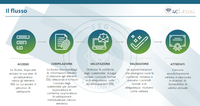 A marzo 2021, 4cLegal ha presentato sul mercato la procedura di ESG Accreditation al fine di rispondere alla crescente esigenza delle Direzioni Legali aziendali di mappare e attestare la sostenibilità dei professionisti cui si affidano, siano essi avvocati, commercialisti, consulenti del lavoro, revisori e così via. La soluzione, oggi conosciuta più precisamente come ESG Accreditation Supply Chain, mira a valorizzare le prassi e i comportamenti dei professionisti negli ambiti Environmental, Social e Governance attraverso uno specifico iter che si avvale di autodichiarazioni confermate dagli stakeholder di riferimento e verificate da 4cLegal. Vengono così minimizzati i rischi di washing e le autodichiarazioni possono essere ritenute credibili sulla base delle conferme ricevute dai referenti delle policy. Si tratta, in concreto, di una soluzione operativa che incentiva il passaggio a una catena del valore sostenibile e soprattutto circolare, in cui tutti gli operatori si impegnano a soddisfare gli stessi parametri e lavorano nella direzione di un Legal Procurement che sia anche Sustainable. Gli Studi professionali possono accreditare le proprie best practice in materia di sostenibilità anche al di fuori di contest legali, attraverso il servizio chiamato ESG Accreditation per Studi professionali: un modo per contribuire attivamente all’evoluzione sostenibile del mercato attraverso iniziative proprie di validazione delle policy ESG. Recentemente, il medesimo servizio è stato sviluppato anche per le Direzioni Legali stesse: si tratta, per l’appunto, dell’ESG Accreditation per le Direzioni Legali, grazie al quale il Legal Department aziendale può fornire prove concrete e credibili anche del proprio impegno sostenibile. In sintesi, dunque, le soluzioni di ESG Accreditation 4cLegal, oltre a voler promuovere l’avvio di un circolo virtuoso e l’implementazione all’interno delle organizzazioni di una governance della sostenibilità organica e fondata su evidenze oggettive, mirano a favorire la creazione di un ecosistema di fornitura realmente ESG compliant anche nel mondo legal.