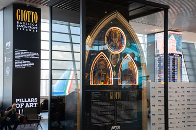 La concezione di aeroporto per ADR è quella di un luogo dove il viaggio ha già avuto inizio. L’obiettivo è quello di rendere il “Leonardo da Vinci” – porta di accesso per Roma e l’Italia – un luogo sempre più vibrante, accogliente e di approfondimento per i passeggeri, oltre che un palcoscenico per la valorizzazione del nostro immenso patrimonio culturale e artistico in tutte le sue declinazioni, dando vita, in un aeroporto di 1.600 ettari e 459.000 mq di aerostazioni, ad un vero e proprio “museo diffuso” per la promozione dei talenti. Consapevole dell’importante ruolo di connessione tra persone e culture, negli ultimi anni ADR ha stretto fruttuose collaborazioni con Istituzioni, Enti e Associazioni culturali del Paese e lavora ad una programmazione culturale, artistica e divulgativa che punti a coniugare sostenibilità sociale e innovazione a beneficio dei passeggeri. Tra le opere esposte, ad esempio, quella realizzata dall’artista Daniele Sigalot, “Master of Mistakes”, un invito a fermarsi e a ripensare agli errori commessi nella propria vita, con la consapevolezza che questi rappresentino ingredienti preziosi di ogni esperienza, ma anche le tre vetrate trecentesche attribuite a Giotto di proprietà del Fondo Edifici di Culto del Ministero dell’Interno, provenienti dalla Basilica di Santa Croce a Firenze, subentrate all’esposizione del Salvador Mundi del 1679 di Lorenzo Bernini. Diverse poi le installazioni di età contemporanea che hanno trovato spazio in aeroporto come “Vertigine” di Manuel Felisi, “Natural Reaction” e “Grande Anima” di Marcoantonio, opere che sensibilizzano su temi ambientali e sulla necessità di preservare la natura. Diversi poi gli eventi musicali e teatrali ospitati presso lo scalo di Fiumicino con performance eseguite nelle aree di passaggio e transito che portano con sé importanti messaggi sociali.