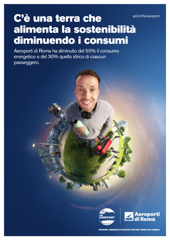 ADR, infatti, pone al centro della strategia non soltanto la sostenibilità ambientale, importante per un settore ad alto impatto come quello dell’aviazione, ma anche la sostenibilità sociale e lo sviluppo delle infrastrutture e della mobilità in chiave sostenibile. Da qui l’idea di dare una forma riconoscibile a questa sua visione strategica attraverso il logo The Careport che proprio nel suo payoff “PERSONE, AMBIENTE E SVILUPPO PER UNA TERRA CHE CAMBIA” sintetizza il nostro concetto di aeroporto sostenibile, innovativo e genuinamente inclusivo, in costante dialogo con le esigenze del Territorio e della sua Comunità.
