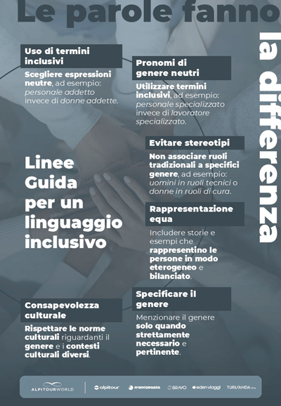 Da quasi 80 anni Alpitour World è il leader italiano nei viaggi e rappresenta la più grande realtà integrata nel settore del turismo contando 6 sedi principali in Italia e oltre 5.000 collaboratori. Sono proprio le persone ad essere sempre al centro delle politiche di sviluppo del Gruppo e in quest’ottica un’ulteriore spinta all’innovazione e al cambiamento culturale è senza dubbio l’ottenimento da parte di Alpitour SpA della certificazione UNI/PdR 125:2022 per la parità di genere, confermando la volontà di promuovere una cultura aziendale inclusiva e incentrata sulle persone e rappresentando un ulteriore passo verso uno sviluppo sempre più sostenibile. “Alpitour. Equal not less” è il key message creato per valorizzare le iniziative D&I già in atto e future, con l’obiettivo di garantire un ambiente di lavoro equo e inclusivo. Per dar vita a queste attività, Alpitour SpA ha costituito un Comitato Guida e redatto una “Policy di Gestione Risorse Umane – Parità di Genere”. Le iniziative comprendono procedure per la gestione di abusi e molestie, politiche di congedo per genitori, formazione post-maternità e workshop sui bias di genere, oltre a un Manuale di Comunicazione per un Linguaggio Inclusivo. Inoltre, l’avvio della collaborazione con Valore D rappresenta un ulteriore passo verso l’inclusione come leva di crescita.