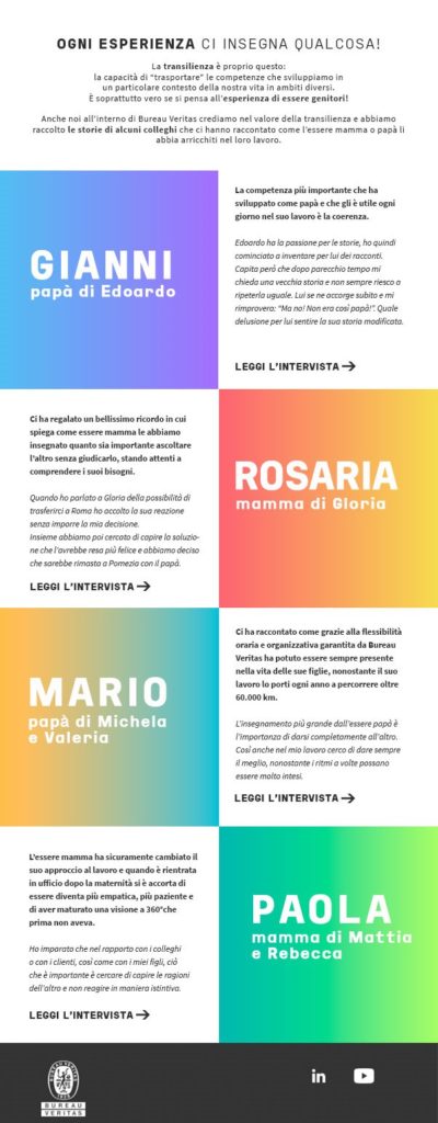 Diversity & Inclusion sono valori fondamentali per Bureau Veritas: una scelta che ha impattato sia l’organizzazione interna che la relazione con l’esterno. Per quanto riguarda la dimensione interna, per Bureau Veritas inclusione significa riconoscere e rispettare le diversità e soprattutto valorizzarle per permettere a tutti di esprimere se stessi nel migliore dei modi e allo stesso tempo dare un contribuito di valore aggiunto all’organizzazione. Proprio per questo i primi mesi del 2020 sono stati dedicati al rinnovo della certificazione GEEIS (Gender Equality European & International Standard). Un percorso, intrapreso nel 2018, che ha portato a definire una strategia più ampia sulla Diversity & Inclusion sotto diversi punti di vista e soprattutto un action plan di azioni concrete che hanno riguardato tutta l’organizzazione. Punto di partenza, il Top Management, che è stato coinvolto in un workshop interattivo sulle tematiche dell’inclusion per poi diffondere questa cultura in tutta la popolazione attraverso un piano di comunicazione su differenti tematiche: il valore della diversità in azienda, il potere della transilienza quando si è genitori, la disabilità in azienda, talenti senza età e worklife balance. Non solo informazione, ma anche interviste, video e tavole rotonde con i dipendenti che si sono prestati ad essere i migliori testimonial e diffondere questi messaggi di apertura all’interno dell’organizzazione. Per quanto riguarda la dimensione esterna, Bureau Veritas ha messo a punto una checklist di autovalutazione, basata sulla Carta delle Pari Opportunità di Sodalitas, a cui BV ha da tempo aderito. La checklist permette a ciascuna organizzazione di misurarsi con le più significative best practice, ottenendo un rating che mette in evidenza il grado di maturità e il benchmark con il mercato. Questo strumento sarà disponibile sul sito di Sodalitas e aiuterà la diffusione della consapevolezza tra i Manager.