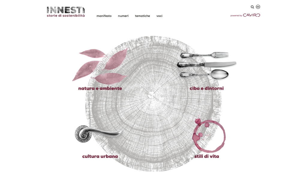 INNESTI è il progetto editoriale digitale promosso da Gruppo Caviro, che vuole raccontare il meglio della sostenibilità a 360°. Il Gruppo lo ha fortemente voluto e sostenuto, come prosieguo naturale del proprio costante impegno alla sensibilizzazione sulle tematiche sostenibili. Nel processo di rafforzamento della comunicazione digitale del Gruppo CAVIRO, teso a diffondere in maniera qualificata una cultura di responsabilità, consapevolezza e rispetto per l’ambiente, si inserisce il progetto Innesti-Storie di Sostenibilità, e-magazine trimestrale, dove trovano spazio voci e storie legate alla sostenibilità capaci di guidare il lettore verso un futuro più responsabile.