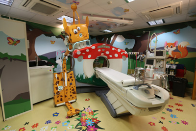 Vengono così avviati diversi restyle estetici e cromatici di sale di risonanza magnetica, TAC e degli stessi strumenti utilizzati per la diagnosi dei piccoli pazienti.