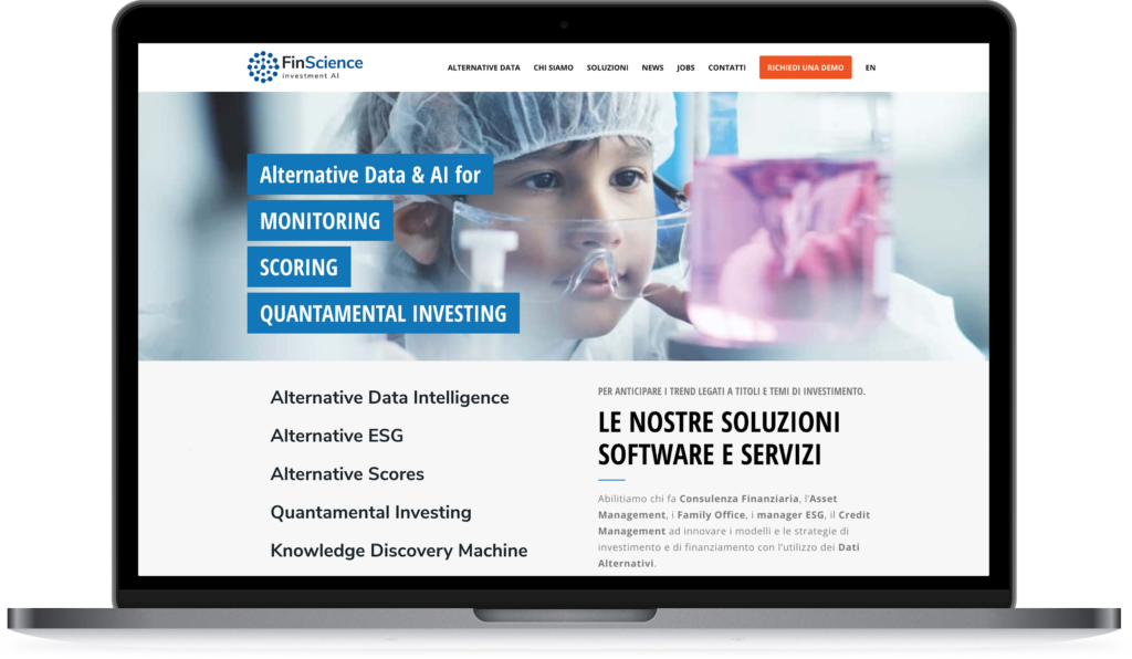 Le nostre tecnologie e soluzioni proprietarie basate su Artificial Intelligence (machine learning, deep learning e Natural Language Processing) sintetizzano in particolare la molecola degli Alternative Data digitali per migliorare le azioni di ESG Manager, Asset Manager, Wealth Manager, Investor Relator, Credit & Risk Manager.