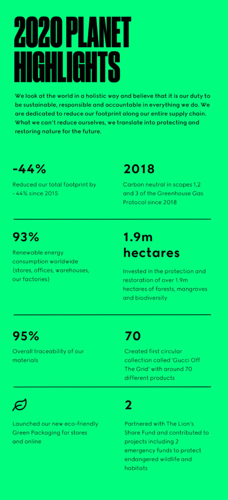 Gucci presenta il suo primo Impact Report e annuncia i nuovi risultati del conto economico ambientale 2020