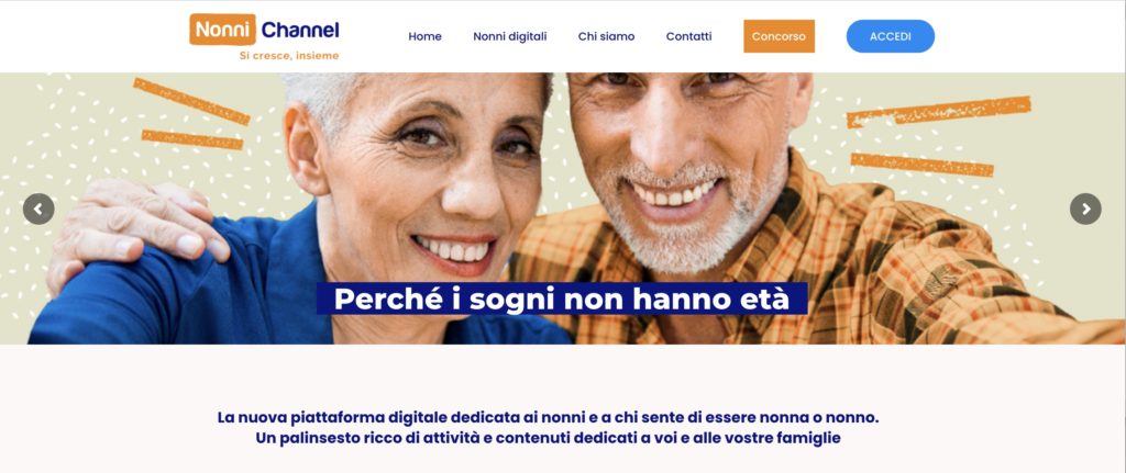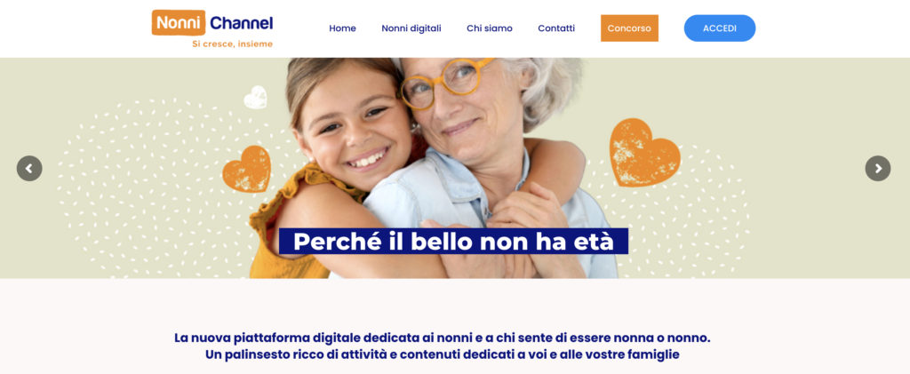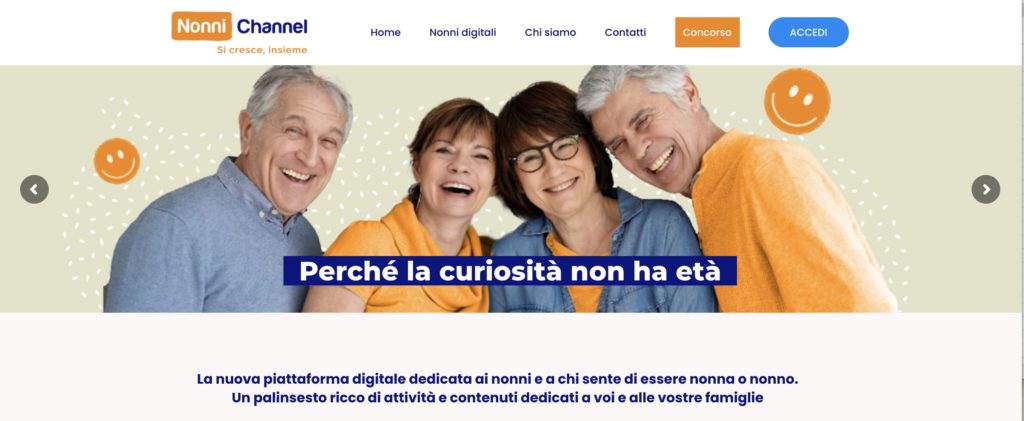 E anche la tanto temuta tecnologia si è rivelata in realtà un’alleata più che un ostacolo, sia sul piano personale sia su quello relazionale: i nonni la amano, la utilizzano in modo autonomo – naturalmente ciascuno con le proprie preferenze e attitudini – e la sfruttano anche per essere presenti sui social network.Il nostro progetto, con il portale Nonni Channel, adotta proprio la tecnologia come fattore abilitante per dialogare con la generazione degli over 60 e per fornire loro servizio di supporto e di stimolo sia per le attività del tempo libero sia per l’esercizio del delicato ruolo di nonni.