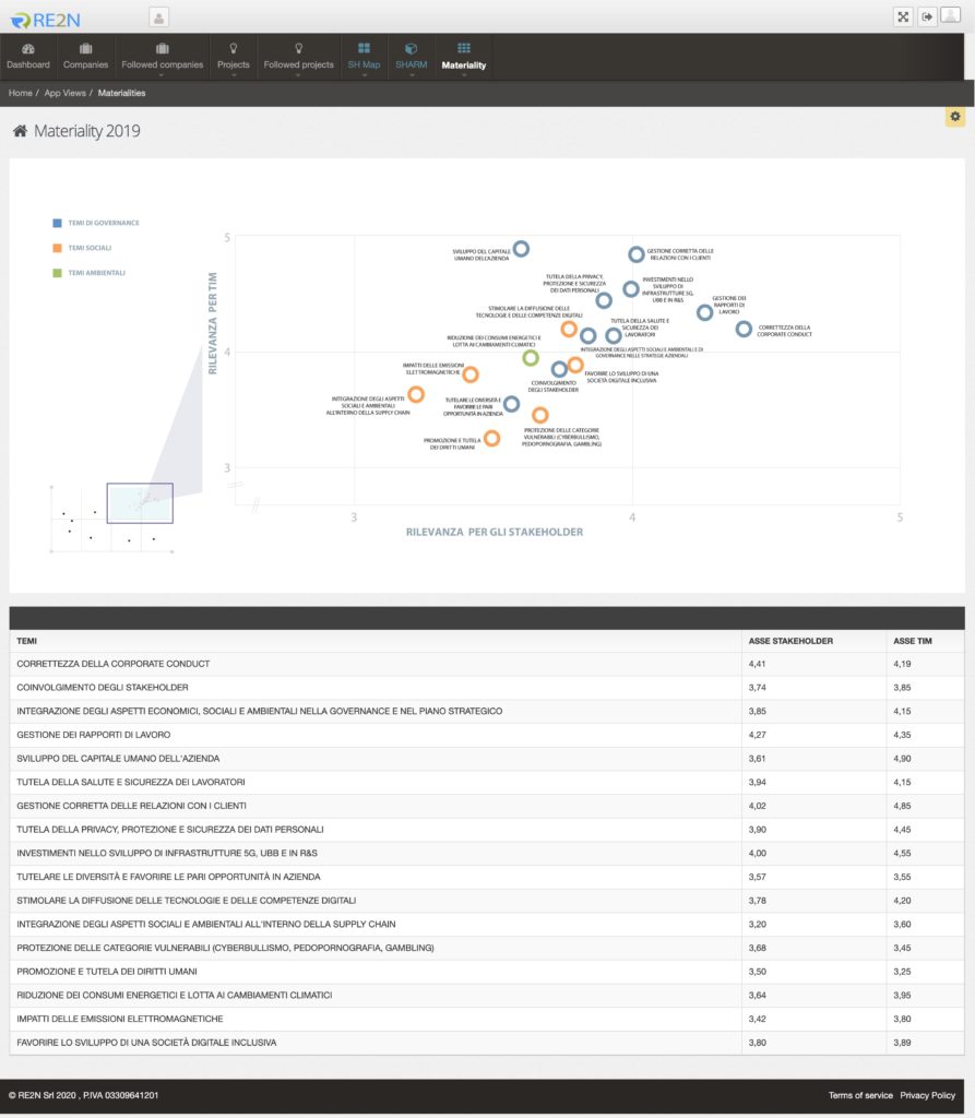 Negli ultimi 3 anni RE2N ha sviluppato per TIM un approccio innovativo alla sostenibilità e all’engagement degli stakeholder facendo leva su tecnologie innovative, big data analytics e digital engagement. Parte integrante dell’approccio è l’utilizzo da parte di TIM della piattaforma di collaborazione RE2N a supporto dell’applicazione di logiche innovative di gestione e coinvolgimento degli Stakeholder e per l’analisi di materialità tramite: