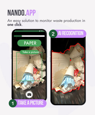 NANDO è un innovativo strumento di misurazione dei rifiuti basato sull’intelligenza artificiale, capace di raccogliere dati sulla quantità e sulla qualità della raccolta differenziata, offrendo consigli mirati su come ridurre e riutilizzare i rifiuti prodotti nella propria azienda. Questi dati vengono elaborati e presentati in una dashboard di monitoraggio utile ai clienti per valutare e ridurre il proprio impatto ambientale.