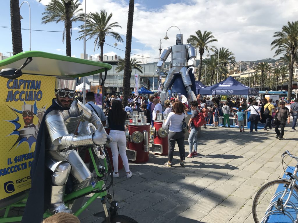 Attraverso attività e laboratori creativi, Capitan Acciaio permette a RICREA di raggiungere, informare e sensibilizzare adulti e bambini sulle modalità di raccolta presenti in ciascun Comune e sulla ‘convenienza ambientale’ della raccolta differenziata degli imballaggi in acciaio. Durante ogni tappa, nelle piazze principali delle città italiane, Capitan Acciaio è a disposizione per aiutare i cittadini a scoprire i vantaggi della raccolta differenziata e il valore del riciclo dell’acciaio, il materiale più riciclato in Europa. Vengono inoltre proposti laboratori in cui bambini e ragazzi possono creare il proprio giocattolo attraverso il riuso creativo degli imballaggi in acciaio, mentre gli adulti possono mettere alla prova la loro cultura sulle buone pratiche di raccolta differenziata con quiz a premi dedicati.