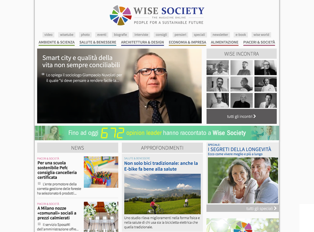Wise Society è una piattaforma multimediale internazionale, magazine online, che raccoglie e pubblica progetti virtuosi, best practice di aziende, testimonianze di imprenditori, ricercatori, professori, medici, creativi, impegnati nel promuovere nuovi stili di vita e un nuovo modo di fare impresa più attento al benessere dell’individuo e all’ambiente.